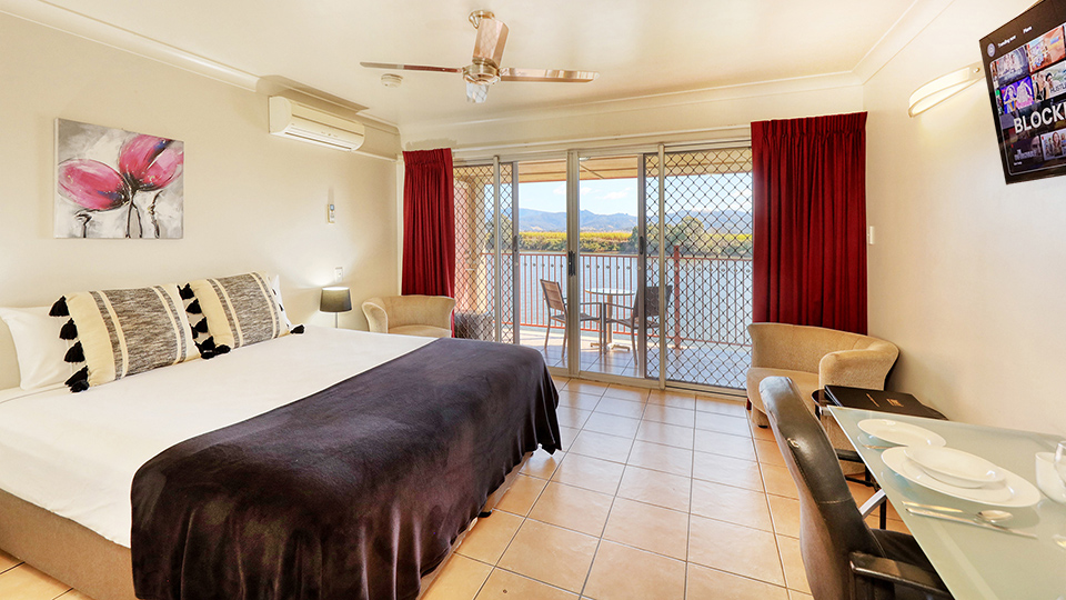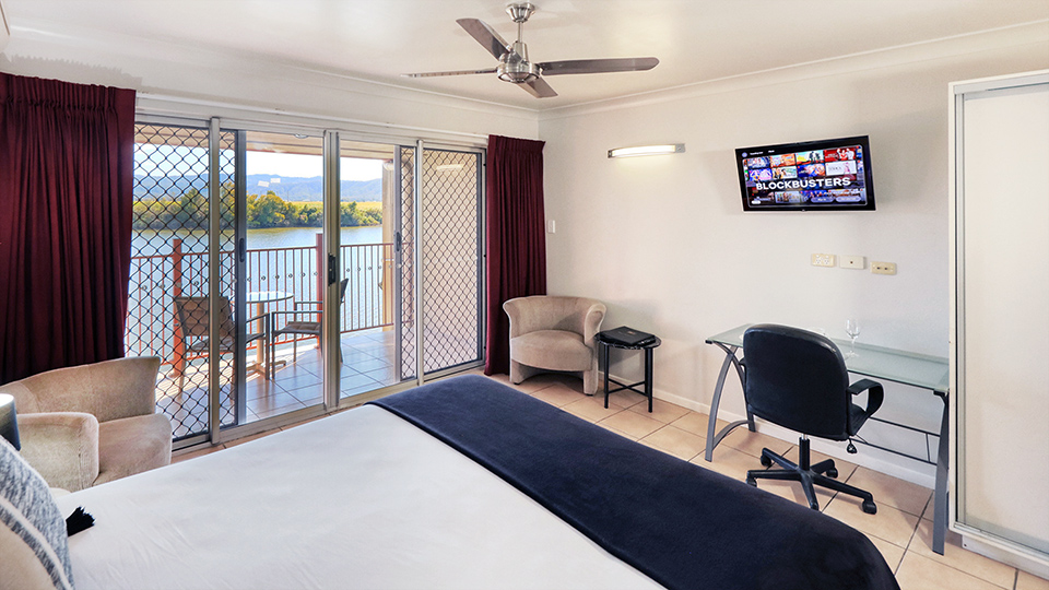 Overlooking the pristine Tweed River and Wollumbin National Park Mountain Range, these well appointed rooms feature a king sized bed and all the comforts of home.
